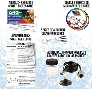 The system uses high-quality materials and includes a 10-foot braided hose, which adds to its durability and ease of use. Cleaning is made easier by the included brush set and a well-thought-out design, though as with most airbrushes, some patience is needed during maintenance. The kit also comes with a helpful 6-color acrylic paint set and mixing wheel, making it good for beginners ready to start painting right away. While the compressor is powerful and quiet, it is corded, so portability is limited.