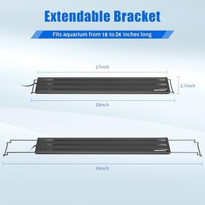 This dimmable feature and multiple color modes, including moonlight options, allow you to customize the lighting day and night. The LED type ensures energy efficiency, with a modest 20-watt power consumption and low heat output thanks to the aluminum casing that also protects against water damage (IP68 rating). The adjustable mounting legs make it easy to fit various tank widths, and the lightweight design simplifies installation.