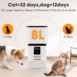 The UTCG Automatic Dog Feeder with Camera is a strong choice for medium-sized dog owners who need reliable, scheduled feeding with smart monitoring. Its large 8-liter (33 cups) capacity means fewer refills, which is helpful during busy workdays or travel. You can schedule up to 15 meals daily with precise portion control via an easy-to-use app, supporting your dog’s healthy eating habits.