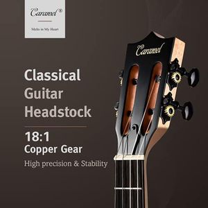 The glossy finish, similar to high-end piano lacquers, not only looks striking but also protects the wood well. This ukulele uses carbon fiber strings, which provide clear, resonant sound and a smooth playing feel suitable for beginners and experienced players alike. The upgraded tuning machines with an 18:1 gear ratio help keep the instrument reliably in tune, which is beneficial for consistent sound without frequent adjustments.