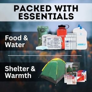 The included tools are versatile and practical, such as a multitool, compass with whistle, and solar-powered radio/light, which help with navigation and communication—important aspects for outdoor survival. The kit weighs nearly 10 kilograms, which might be a bit heavy for some users to carry over long distances, especially if they are older or less physically fit. While it covers essentials well, the food supply is intended for 72 hours, so it’s not suitable for longer-term use without additional supplies. The battery life duration for electronic devices is not specified, which could be a limitation in extended outages.