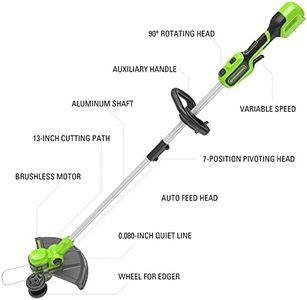 However, it does require assembly, which might be a downside for some users. While it’s cordless and battery-operated, which is convenient, it may not offer the same power as gas trimmers, potentially limiting its effectiveness on very thick or tough weeds. Those seeking a lightweight, user-friendly trimmer for regular maintenance of a small to medium yard will find this product beneficial, though it may not be ideal for heavy-duty or extensive use.