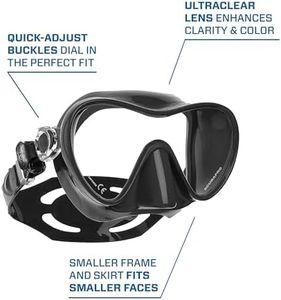 The single lens mask, while offering a good view, lacks the separate lens design that some people prefer for better peripheral vision. This set is most appropriate for recreational snorkeling and those who want a convenient, all-in-one option instead of professional divers or those seeking specialized gear.