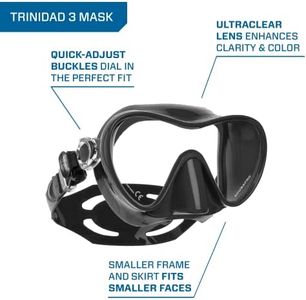 The Cressi Pano 4 & Supernova Dry mask and snorkel set is designed for both beginners and experienced snorkelers looking for comfort and safety. The mask has a soft, hypoallergenic silicone skirt that helps create a secure, comfortable fit with minimal leaks and includes a soft nose pocket that makes equalizing pressure easier. Its single tempered glass lens offers a wide, panoramic view while being tough and easy to clean, which is great for clear underwater visibility. The mask strap uses push-button buckles, making it simple to adjust the fit quickly.
