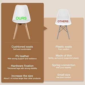 The DUMOS Dining Chairs Set of 6 offers a good mix of comfort and style for everyday dining. Each chair features padded seats with sponge cushioning, providing a soft place to sit whether it’s for a quick meal or a longer chat. The backrests are designed to be supportive and ergonomic, helping you sit comfortably without strain. With a seat height of about 17.7 inches, these chairs fit well with standard dining tables, making it easy to slide in and out. The chairs are upholstered in easy-to-clean PU leather, which resists spills and is simple to maintain — great if you have kids or frequent meals. The wooden legs add sturdiness and a classic look, while the chairs’ width of around 19 inches offers enough space for most adults without feeling cramped.