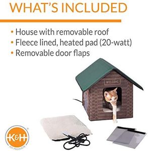Constructed from solid wood, this cat house is durable and can withstand tough weather conditions and impacts. It also includes an escape door with a PVC strip to keep cold air out while allowing cats a way out if needed, enhancing safety. However, the house is quite heavy at nearly 48 pounds, which makes it less portable if you need to move it frequently. Cleaning involves removing the heating pad cover and general upkeep as directed, but the wood material might require extra care compared to plastic or metal options.