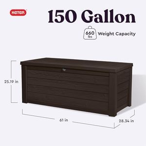 The Keter Outdoor Storage Deck Box is an attractive and practical solution for anyone looking to keep their outdoor space organized. Made from durable, weather-resistant resin, it mimics the look of rattan or wicker, making it a stylish addition to your patio or garden. With a generous capacity of 150 gallons and a weight limit of 660 pounds, it can accommodate a variety of items such as patio furniture cushions, gardening tools, or pool accessories. This multifunctional piece also serves as a bench, providing additional seating while helping to declutter your outdoor area.