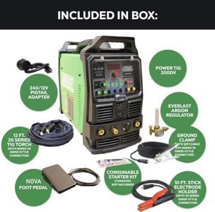 The package is comprehensive, including various accessories needed to start welding immediately. Yet, the absence of a foot pedal control could be a drawback for TIG welding, as it offers greater precision. With a high customer rating of 4.5 out of 5 stars and a rank of #2 in MIG Welding Equipment, it's well-regarded by users. This welder is best suited for those requiring a multi-functional welding machine for various materials, but it might not be the top choice for dedicated aluminum TIG welding due to the lack of AC capability and foot pedal control.