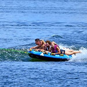 Constructed from heavy canvas material, it favors durability but might feel heavier compared to lighter tubes made from vinyl. Its intermediate skill level rating makes it best suited for users with some experience using water towables. For those seeking a spacious, sturdy tube for group fun with comfortable features and easy setup, the Airhead Mega Slice is a solid choice. However, if portability or very lightweight gear is a priority, other options might be more suitable.